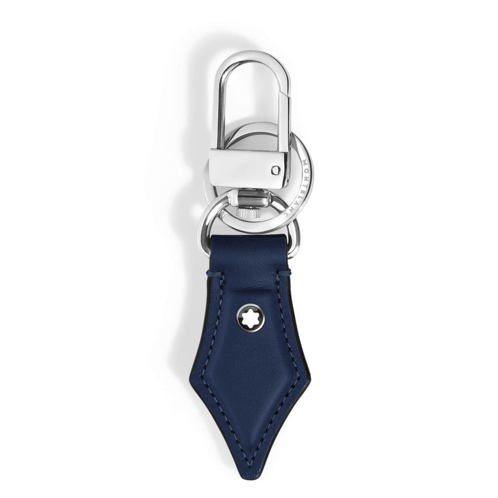Der Montblanc Schlüsselanhänger aus Meisterstück Kalbsleder in Blau ist eine subtile Hommage an die Kunst des Schreibens. Mit seiner Form, die an eine Füllfederhalterspitze erinnert – das Herzstück von Montblanc –, spiegelt er in jedem Detail das Erbe der Marke wider. Am Ring lassen sich verschiedene Schlüssel befestigen, während der einfach zu schließende Haken sich an Taschen befestigen lässt.