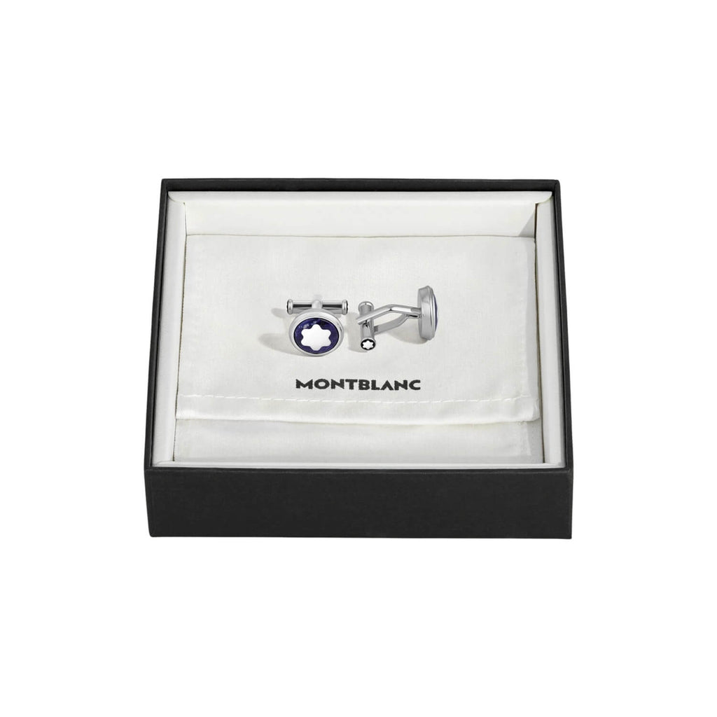 • Edelstahl mit Montblanc Emblem in blauer Lackintarsie