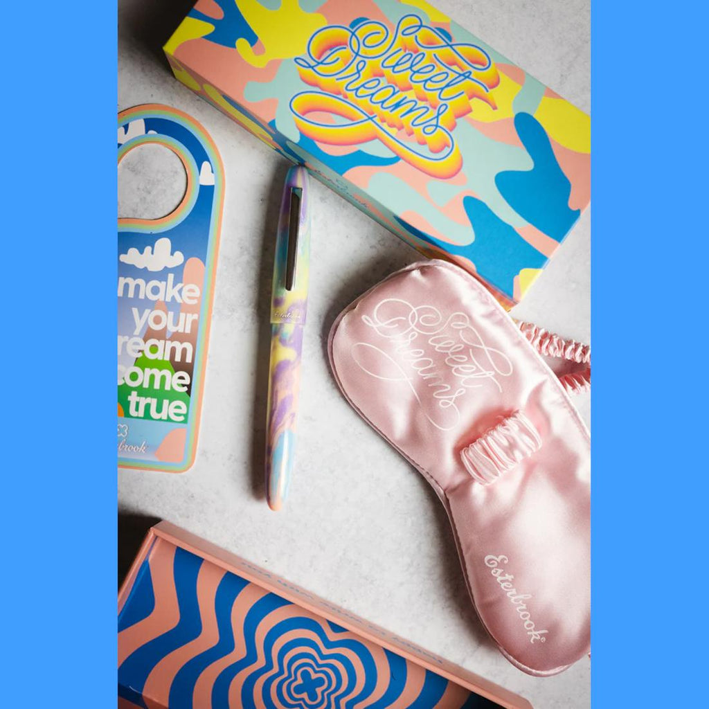 • Geschenkverpackung mit stilvoller Schlafmaske, die gleichzeitig als praktische Schreibgerätehalterung dient