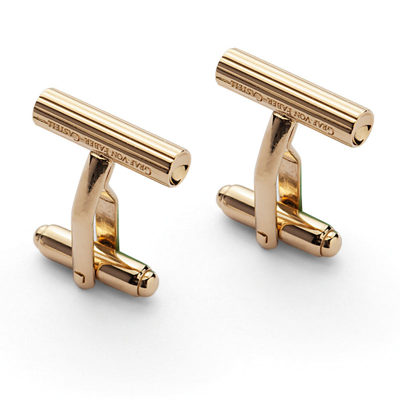 Die Manschettenknöpfe von Graf von Faber-Castell sind traditionell in ihrer Form und lassen den Materialien Raum. Das macht sie so besonders. Der klassische Riegel, kanneliert gearbeitet mit 14 Karat-Vergoldung ist so schmückend, dass es keiner Kapriziösitäten bedarf.