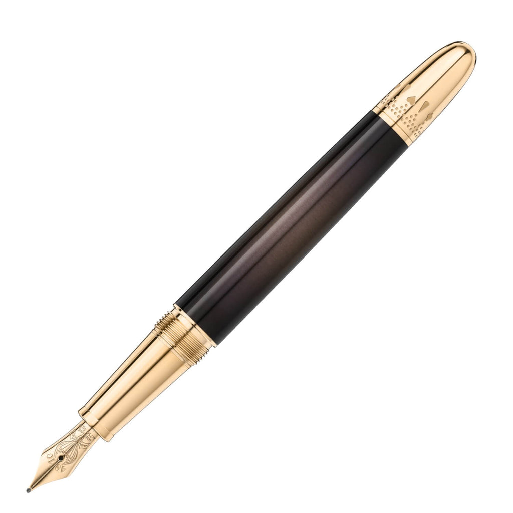 Die Meisterstück Around the World in 80 Days Collection Edition 2 ist vom berühmten Abenteuerroman aus der Feder von Jules Verne inspiriert. Der Doué Classique Füllfederhalter mit vergoldeter Metallkappe und anthrazitfarben verlaufendem lackiertem Korpus verweist auf den zweiten Teil der Reise von Bombay nach Yokohama.