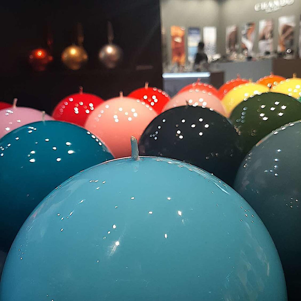 DAS IST MAL EINE KERZE! Um in der Terminologie der Mode zu bleiben...EIN WAHRES STATEMENT. Kugelrund, gewaltig groß und hochglänzend erinnert sie uns an eine Bowling-Kugel. Daher auch der Name für diese außergewöhnlichen, schönen Objekte aus Italien, die wunderbar verpackt in einer Hutschachtel kommen.